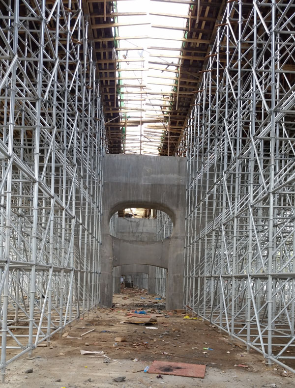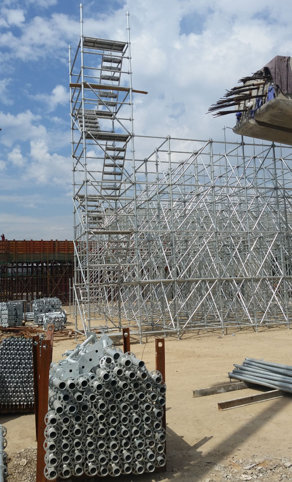 搭設(shè)靈活,可靠性差,用鋼量大,搭設(shè)工作量和勞動強度大,施工效率低。